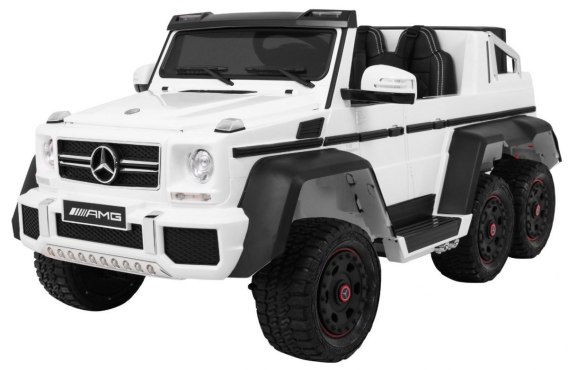 Auto Mercedes G63 6x6 MP4 dla dzieci Biały + 2 Pedały gazu + Regulacja siedzenia + MP4 + LED + Bagażnik + Kufer dla rodzica