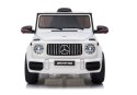 Biały Mercedes G63 AMG jest istnym połączeniem solidności, najwyższej jakości i militarnego wzornictwa. Pojazd ten sprawdzi się zarówno podczas codziennych jazd po osiedlu, jak i w czasie weekendowych wycieczek poza miasto. Znajdujące się „pod maską" dwa silniki o mocy 45W każdy w połączeniu z akumulatorem 12V4,5Ah umożliwiają jazdę w prędkości od 3 do 5 km/h, co z pewnością zrobi wrażenie nie tylko na małym kierowcy, ale i przechodniach.