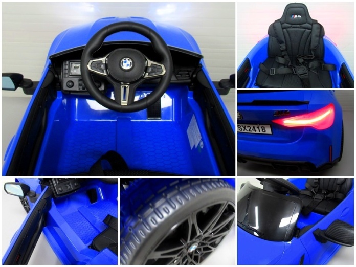 • BMW m4 NIEBIESKI Auto na akumulator EVA Skóra pilot