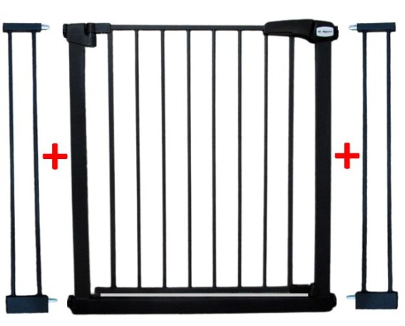 Wymiary: wysokość: 78 cm, szerokość bramki z rozszerzeniami (bez śrub) - 91,5 cm otwór montażowy: 79-105 cm otwór montażowy z rozszerzeniami: 100-105 cm minimalna szerokość otworu montażowego (bramka ze śrubami) - 79 cm, minimalna szerokość otworu montażowego (bramka ze śrubami) z rozszerzeniami - 100 cm, maksymalna szerokość otworu montażowego (bramka ze śrubami) - 105 cm szerokość elementów rozszerzających: 10,5 cm (dwa elementy, każdy po 10,5 cm) ilość elementów rozszerzających: 2 wysokość drzwi: 71,5 cm, szerokość drzwi: ok. 58 cm, 4 śruby montażowe z silikonowymi nakładkami, waga: 5/5,5 kg, Dzięki możliwości rozbudowania i systemowi montowania bramkę można dopasować do przejść o wymiarach od 79 cm do 105 cm. Rozszerzenia możesz zamontować po dowolnej stronie. Możesz zamontować jedno rozszerzenie lub nie montować żadnego.
