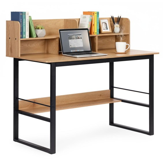 Biurko marki ModernHome w kolorze jasnego dębu świetnie wpisuje się w nowoczesne wnętrza w stylu loft. Prosta forma, metalowa konstrukcja oraz praktyczna nadstawka sprawiają, że z łatwością zorganizujesz wygodne miejsce do pracy lub nauki. To model, który dobrze wygląda zarówno w domowym biurze, jak i w pokoju młodzieżowym. Duża powierzchnia robocza pozwala swobodnie ustawić komputer, monitor oraz niezbędne akcesoria, a przemyślany układ pomaga utrzymać porządek. Dzięki temu zyskujesz przestrzeń, w której możesz pracować spokojnie i wygodnie każdego dnia.
