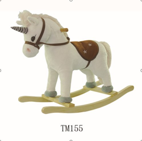 Bujany Konik Jednorożec na Biegunach dla dzieci 24m+ Biały + Dźwięki + Drewniana rączka + Wygodne siedzisko + Drewniane płozy
