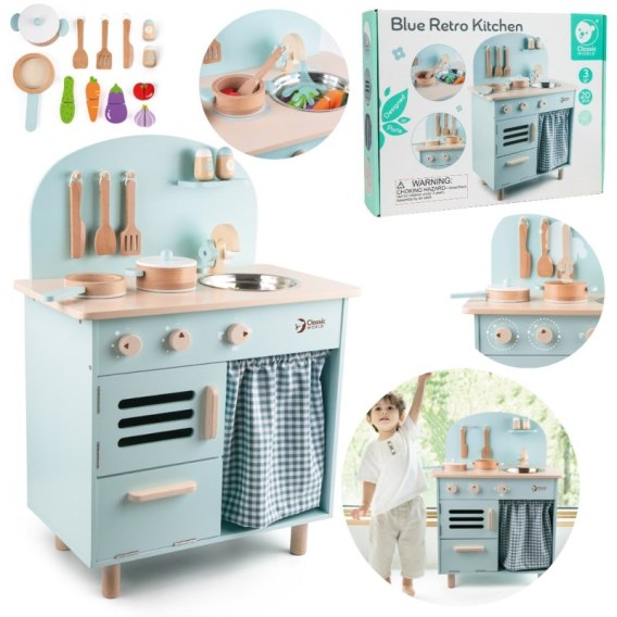 Przepiękna Kuchnia od marki CLASSIC WORLD to świetna propozycja dla dzieci które lubią wcielać w różne role osób dorosłych podpatrzonych w życiu codziennym.Wspólne przygotowywanie posiłków to doskonała nauka poprzez zabawę. Kuchnia zawiera drewniane akcesoria takie jak: zlewozmywak, kuchenka, piekarnik, szafka itp które dadzą dziecku możliwość stworzenia ulubionych dań dla całej rodziny.