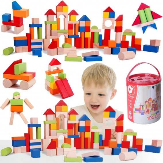 • CLASSIC WORLD Drewniane Klocki 100 el.