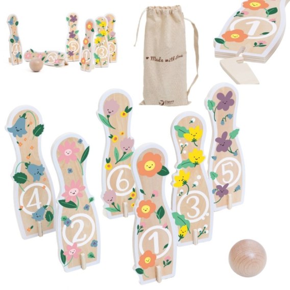Drewniane kręgle Classic World to doskonała gra zręcznościowa, która zapewni dzieciom godziny świetnej zabawy. Kolorowe kręgle w kształcie kwiatów i piłka do rzucania rozweselą maluchy i zachęcą do aktywności fizycznej. Wykonane z wysokiej jakości drewna i pomalowane nietoksycznymi farbami, gwarantują bezpieczeństwo podczas zabawy. Idealna zabawka do wspólnej gry w gronie rodziny lub przyjaciół.