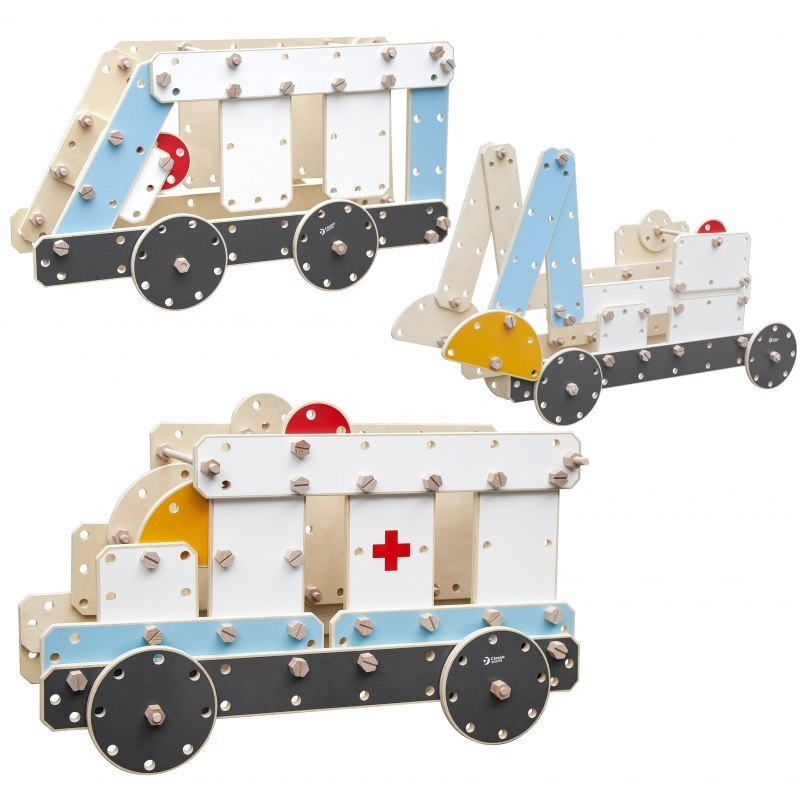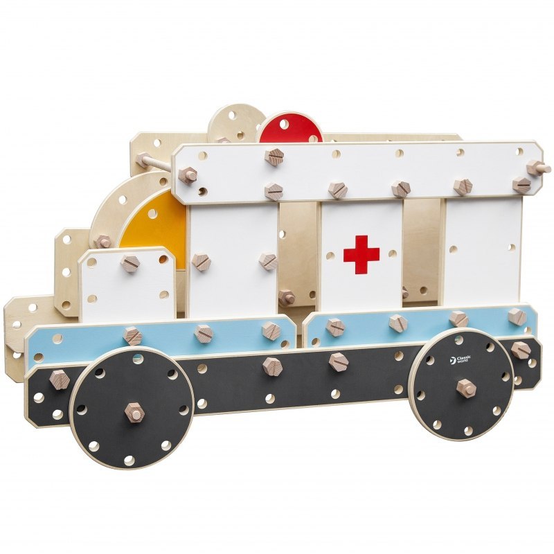 CLASSIC WORLD Ogromne Klocki Konstrukcyjne Drewniane Zestaw Pojazdy Karetka