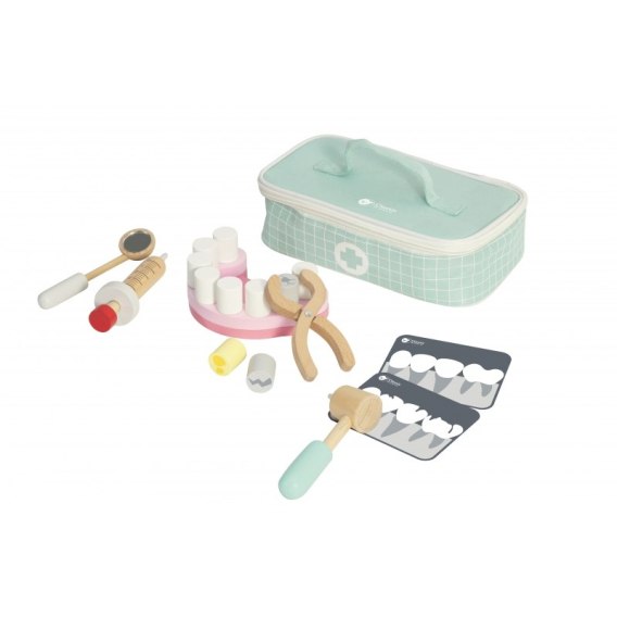 Zmień strach przed dentystą w fascynującą zabawę z drewnianym Zestawem Dentystycznym od CLASSIC WORLD! Ta realistyczna zabawka do odgrywania ról to doskonały sposób, aby oswoić dziecko z wizytami u lekarza i uświadomić mu, jak ważna jest higiena jamy ustnej. Zestaw zawiera wszystkie niezbędne akcesoria, w tym model szczęki z ruchomymi zębami strzykawkę, pęsetę i lusterko, zapakowane w estetyczną, materiałową torbę. Zabawa w dentystę wspiera rozwój empatii, kreatywności oraz zdolności manualnych Twojego dziecka. Wysokiej jakości drewno i bezpieczne wykończenie gwarantują trwałą i edukacyjną rozrywkę!