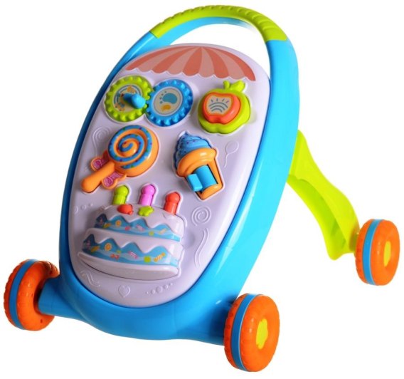 Produkt 3w1 posiada funkcje: edukacyjną, chodzika-pchacza i zabawki.