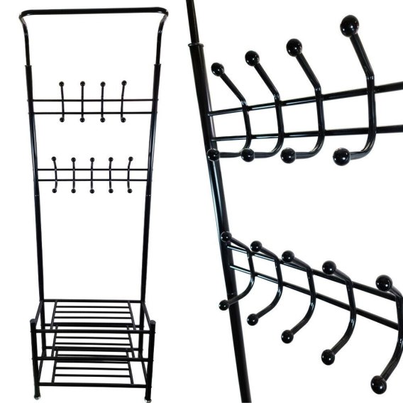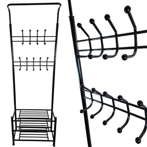 Czarny stojący wieszak Stojak Na Ubrania Kurtki 3 szafki na buty Do Domu Biura