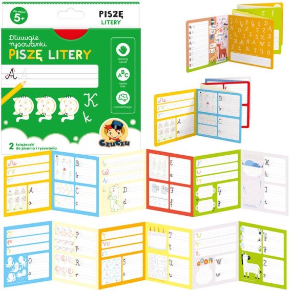 CzuCzu Dłuuugie rysowanki Piszę litery to edukacyjny zestaw dla przedszkolaków zaczynających przygodę z literami, alfabetem i nauką pisania.