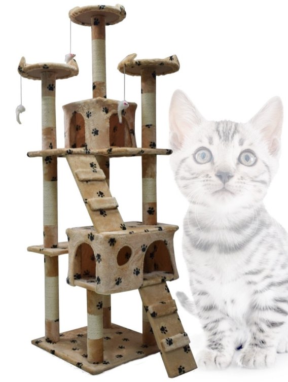 Ten piękny, 5-poziomowy drapak to dla kota wymarzone miejsce do zabawy, odpoczynku i - co ważniejsze - gdzie może swobodnie ostrzyć pazury.