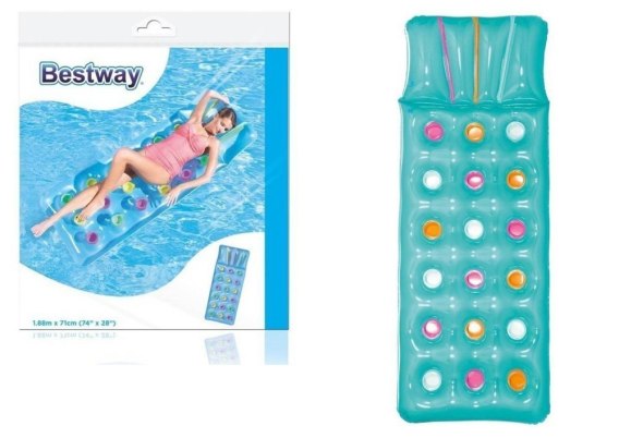 Jednym z najbardziej popularnych artykułów do pływania niezbędnym dla każdego miłośnika wody jest materac. Dzięki nim w spokoju będziesz mógł wylegiwać się na słońcu nie wychodząc z wody. Materac jest wyposażony w wbudowana nadmuchiwaną poduszkę, która zwiększa komfort użytkowania. Charakteryzuje się również ogromną stabilnością na wodzie. Wytworzony jest z odpornego na uszkodzenia materiału PVC, dzięki czemu dowoli będziesz mógł czerpać radość z jego korzystania.