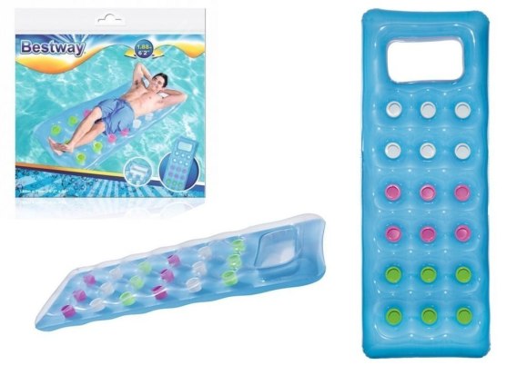 Materac to najbardziej popularny dodatek do wyjazdów nad wodę. Zaopatrz się więc w materac, który idealnie spełni Twoje oczekiwania i pomoże Ci się zrelaksować w wolnym czasie. Materac jest bardzo wygodny a dzięki swojej stelażowej budowie zapewni Ci odpowiednie dopasowanie do ciała. Zawarte w nim otwory mogą posłużyć Ci nawet jako uchwyt na napoje. Stworzony jest z wytrzymałego materiału PVC odpornego na uszkodzenia dzięki czemu nie będziesz musiał się martwić, że coś zepsuje Ci Twój odpoczynek.