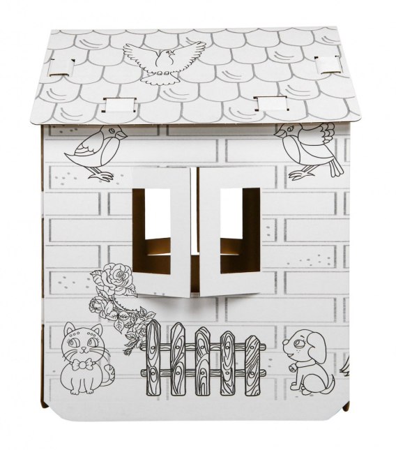 Domek z kartonu to propozycja dla dzieci od 3-go roku życia. Zabawka posiada ruchome elementy takie jak otwierane okna i drzwi. Poprzez zabawę tym domkiem dziecko pobudzi wyobraźnie, rozwinie kreatywność i zdolności plastyczne. Domek po złożeniu można pomalować (zestaw nie zawiera przyborów do malowania). Dostępna wersja dla dziewczynki i chłopca. |