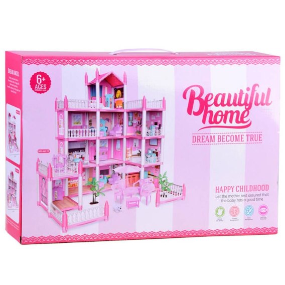 Piękny różowy domek willa z mebelkami - wieloelementowy zestaw zapewni mnóstwo kreatywnej zabawy każdej dziewczynce. Z pewnością nie zabraknie pomysłów na zabawę.