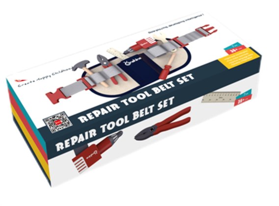 Zestaw narzędzi z pasem to niezbędnik każdego małego majsterkowicza już od 3-go roku życia. Narzędzia takie jak młotek, kombinerki, wkrętarka, śrubokręt, miarka czy klucz płaski, wykonane są z drewna, są bezpieczne i wytrzymałe, nie posiadają ostrych krawędzi. Pas na narzędzia jest regulowany i zapinany na zatrzask, posiada kieszonkę na środku i 5 przegródek, do których można włożyć wszystkie akcesoria zestawu.