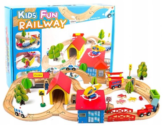 Prezentowany zestaw składa się z drewnianych torów, które tworzą bajeczną drogę z mostami. Zestaw rozwija inteligencję, wyobraźnię i koordynację wzrokowo-ruchową dziecka. Szereg dodatkowych elementów składających się na zabawkę czyni ją doskonale wyposażonym zestawem, gwarantującym długą i bardzo interesującą zabawę. To kultowa zabawka nigdy nie wyjdzie z mody.