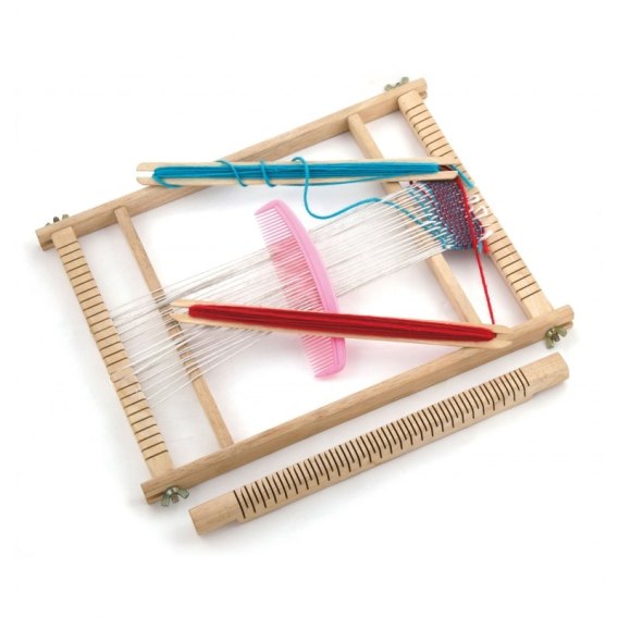 Twórcza zabawa z krosnem tkackim gwarantuje ciekawe zajęcie, w którym każdy maluch może stworzyć swój własny warsztat tkacki.