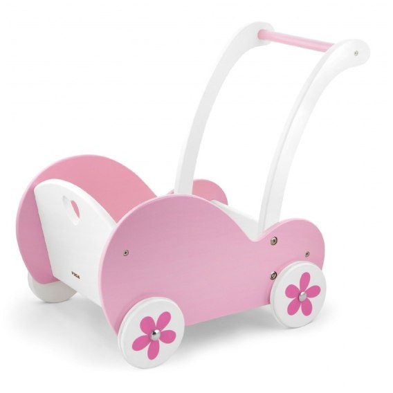 Klasyczny drewniany wózeczek dla lalek, starannie wykonany - z dbałością o każdy element. Wykonany z najwyższej jakości drewna bukowego, jest bardzo stabilny i idealnie sprawdzi się jako chodzik pchacz dla rocznej dziewczynki.
