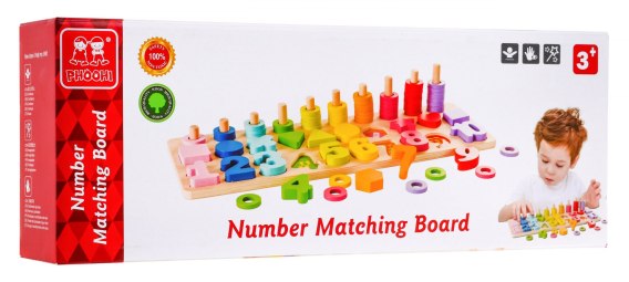 | - numerki od 1-10, - 10 x różne figury, - 55 x różnokolorowe pierścienie, - drewniana podstawka. |