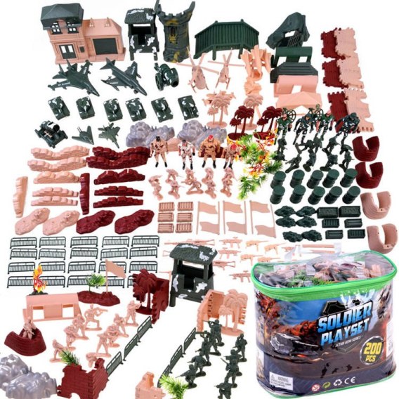Mocno rozbudowany zestaw żołnierzyków do zabawy w wojsko, działania militarne, planowanie podchodów itp zajęcia związane z wojskiem. Plastikowe figurki żołnierzy i cały arsenał batalistyczny zapewni mnóstwo kreatywnej zabawy każdemu małemu chłopcu.