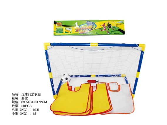 - bramka z siatką, - piłka, - pompka, - 3 x kamizelka żółta, - 3 x kamizelka biała. |