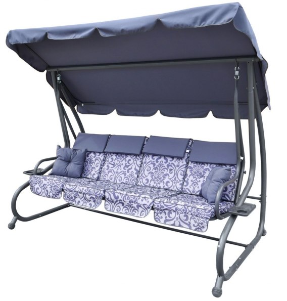Opis  Huśtawka ogrodowa z rozkładanym siedziskiem i regulacją daszka, szara ze wzorem [8078 PATTERN SZ]