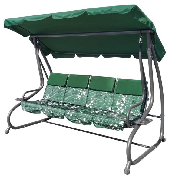 Duża Huśtawka ogrodowa 4-osobowa Zielone Motyle + Tekstylina + Daszek + Regulowane siedzisko + 4 Poduszki