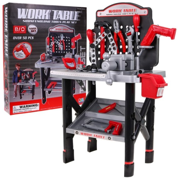 Duży Warsztat z narzędziami dla dzieci 3+ Elektryczna wkrętarka + Stolik z tablicą narzędziową 50+ el.