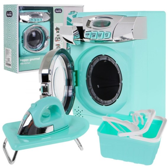 Zestaw interaktywna pralka, deska do prasowania i kosz na bieliznę to propozycja dla wszystkich dzieci, które lubią naśladować swoich rodziców podczas ich codziennych domowych obowiązków. Pralka zasilana jest bateriami typu AA- 3 x 1,5V (brak w zestawie). Posiada efekty dźwiękowe i świetlne. Przyciskami ustala się programy prania i w zależności od programu słychać różne odgłosy pracy pralki oraz świeci się dioda z przodu pralki. Programy prania: - pierwszy i drugi program słychać odgłosy prania, bęben obraca się, - trzeci - odgłos odpompowania wody, - czwarty - odgłosy napełniania wody, bęben pralki wiruje. Pralka posiada otwieraną komorę na detergenty oraz otwierany bęben. |