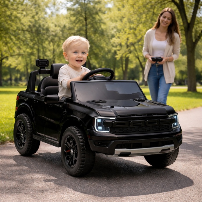 Pojazdem można sterować zarówno za pomocą pilota (przez rodzica) lub dziecko może to robić samodzielnie, siedząc za kierownicą.