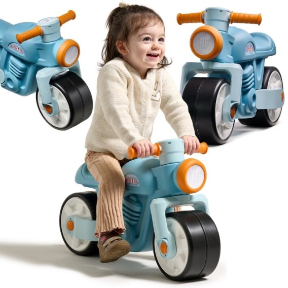 Nowa wersja uroczego motorka biegowego Falk. Wyposażony w duże kółka zapewniające dziecku niezbędną stabilność a elastomerowa powłoka motorka sprawia że jest on bardziej odporny na zarysowania czy inne uszkodzenia. Idealny do użytku wewnątrz i na zewnątrz