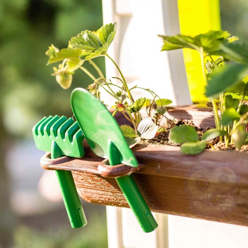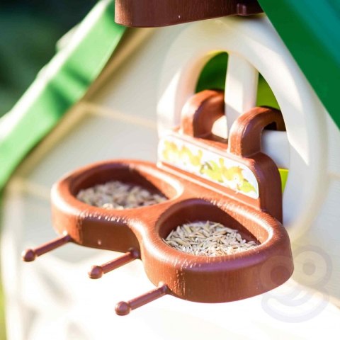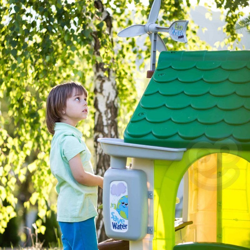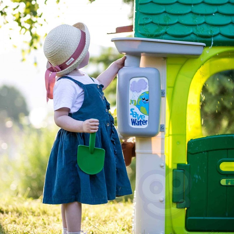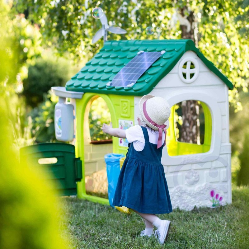 Domek FEBER ECO to domek zabaw, w którym znajdują się wszystkie aktywności potrzebne maluchom do wzbudzenia ciekawości w przyrodzie. Świetne miejsce i świetna nauka dla dzieci! W zestawie 2 kosze do recyklingu (żółty i niebieski), mały ogródek (w doniczkach) i narzędzia. To świetna aktywność na świeżym powietrzu dla dzieci. Można bawić się w sadzenie nasion i obserwowanie wzrostu roślin. Wyposażony jest również w gniazdo i karmnik dla ptaków. A woda deszczowa jest idealna do podlewania roślin lub kwiatów. Wiatrak i imitacja panelu słonecznego dają niesamowite funkcje do nauki o zrównoważonych energiach! Odporne, łatwe w montażu i wyposażone w system Anti UV zapobiegający utracie koloru i zwiększający odporność tworzywa.