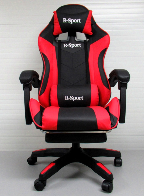 • Fotel Gamingowy K4 R-Sport CZERWONO-CZARNY z podnóżkiem+masażer