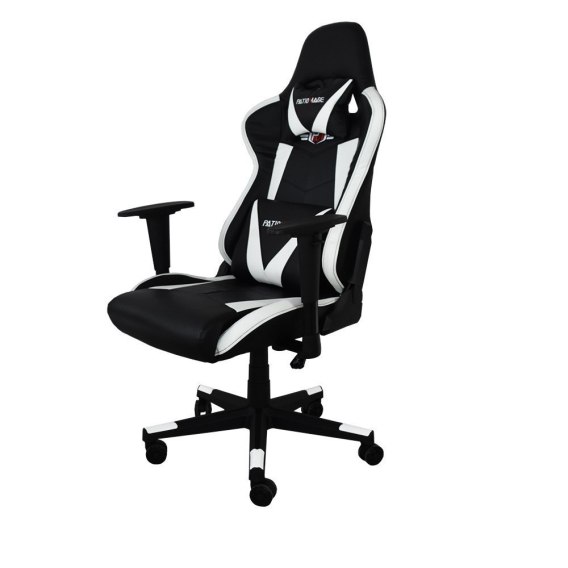 Fotel Krzesło biurowe do komputera gamingowe wygodne ze skóry biało-czarne z regulacją