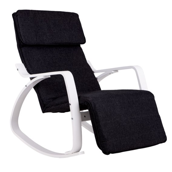 Fotel bujany regulowany podnóżek biało czarny ModernHome