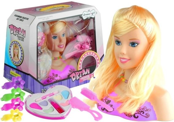 Większość młodych dam uwielbia tworzenie wymyślnych makijaży i fryzur, często z wykorzystaniem produktów należących do starszych sióstr i mam. Znaleźliśmy na to ciekawe rozwiązanie, w związku z czym przedstawiamy głowę lalki do stylizacji. Zabawka ta pozwoli dziewczynkom na wcielenie się w rolę wystrzałowej makijażystki i fryzjerki. Głowa lalki sprawi dziecku nie tylko ogromną frajdę płynącą z ciekawej zabawy, ale dodatkowo wpłynie na rozwinięcie wyobraźni, kreatywności oraz poczucia estetyki.