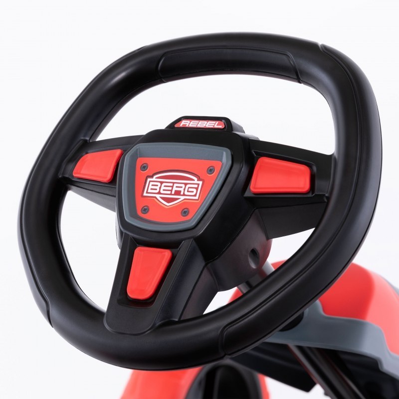 Gokart Reppy Rebel na pedały firmy Berg to solidny pojazd, który zapewni Waszym dzieciom niezapomnianą zabawę! Gokart wyposażony jest w kierownicę dźwiękową i regulowane siedzisko, dzięki czemu z pojazdu mogą korzystać dzieci w wieku od 2,5 do 6 lat! Prosta i praktyczna konstrukcja wykonana jest z wysokiej jakości materiałów o najwyższym standardzie technicznym. Taki gokart to idealny pojazd dla Twojego dziecka, który dodatkowo wspiera rozwój motoryczny.