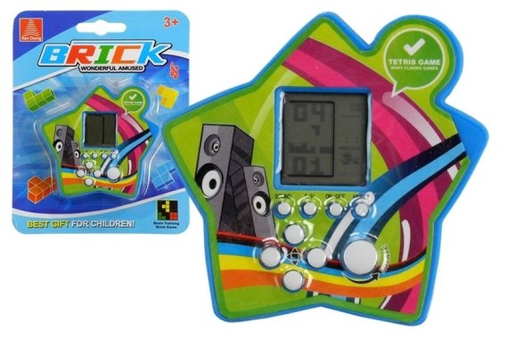 Gra elektroniczna w obudowie w kształcie gwiazdy jest bardzo lekka, co w połączeniu z niedużymi wymiarami czyni ją kieszonkowym wariantem, który możesz zabrać ze sobą wszędzie. Składa się z wyświetlacza oraz białych przycisków odpowiadających za funkcje gry. Możemy nimi uruchomić i wyłączyć grę, zatrzymać rozgrywkę, wyłączyć dźwięki lub zresetować planszę, by móc zacząć układać klocki od początku. Pozostałe przyciski służą do nawigacji podczas gry, a także obracania klocków. Kieszonkowa wersja gry elektronicznej umili czas zarówno dziecku, jak i dorosłemu. Rewelacyjnie sprawdzi się w przerwie pomiędzy zajęciami, a także w autobusie lub w domu podczas relaksu.