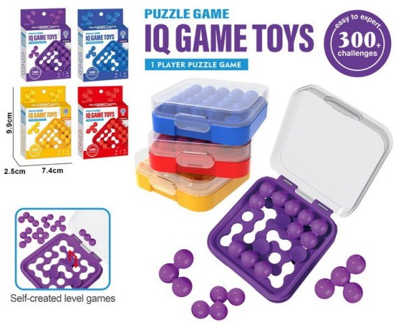 Gra logiczna, układanka dla dzieci od 6-go roku życia. Składa się z zamykanego pudełka, na którego dole znajdują się otwory w różnych kształtach oraz okrągłych kółek złączonych ze sobą w różnych kształtach. Celem jest dopasowanie elementów w taki sposób, aby idealnie wpasowały się w wyznaczoną przestrzeń. Gra ćwiczy logiczne myślenie, spostrzegawczość, rozpoznanie i odtwarzanie wzorów. Dzięki swojej konstrukcji można zabrać ją zawsze ze sobą. Funkcje gry: - gra logiczna, - przeznaczona dla dzieci od 6-go roku życia, - znakomicie wykonana, - wymaga spostrzegawczości, - rozwija koordynację ręka-oko, - uczy logicznego i szybkiego myślenia. - świetny sposób na wspólne spędzenie czasu, - idealny sposób na nudę lub oderwanie dzieci od komputerów, telefonów, tabletów. |