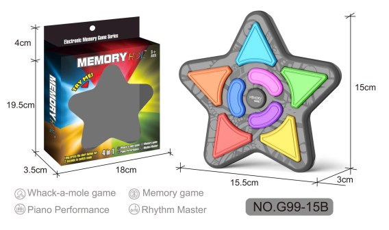 Elektroniczna, logiczna kieszonkowa gra w kształcie gwiazdy Memory dla dzieci od trzeciego roku życia. Ta popularna gra polega na powtarzaniu sekwencji wyświetlających się wcześniej kolorów. Grę rozpoczynamy po naciśnięciu dużego przycisku MEMORY znajdującego się na środku gry. Następnie komputer wskazuje - podświetla kolorowe pola, które należy odtworzyć. Z każdą sekwencją poziom trudności się zwiększa. W przypadku pomyłki słychać charakterystyczny dźwięk i grę należy rozpocząć na nowo. Urządzenie oferuje aż 4 różne tryby gry, które zmieniamy przez przytrzymanie środkowego przycisku. Dodatkowym atutem gry jest nieduża wielkość, dlatego można schować ją do kieszeni i zabrać ze sobą praktycznie wszędzie. Gra zasilana jest bateriami typu 2 x AA (baterie zostały dołączone do zestawu). Funkcje gry: - odpowiednia dla dzieci od trzeciego roku życia, - wykonana z najlepszej jakości materiałów, - wersję kieszonkową, można wszędzie zabrać ze sobą, - żywe kolory przyciągają wzrok dziecka i zachęcają do zabawy, - efekty dźwiękowe i świetlne, - uczy spostrzegawczości, ćwiczy pamięć, - poprawia koordynację wzrokowo-ruchową, - 4 różne tryby gry. |