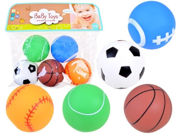 Zestaw pięciu gumowych piłek z piszczałką przypadnie do gustu każdemu dziecku. Zabawka wykonana w całości z gumy, posiada fajny kolor i grafikę odpowiadająca danej piłce. Zabawka posiada wbudowaną piszczałkę, dzięki czemu w momencie gdy dziecko ją naciśnie wyda śmieszny odgłos. Zabawka sprawdzi się podczas kąpieli, w piaskownicy, czy też nauce rzucania i łapania.