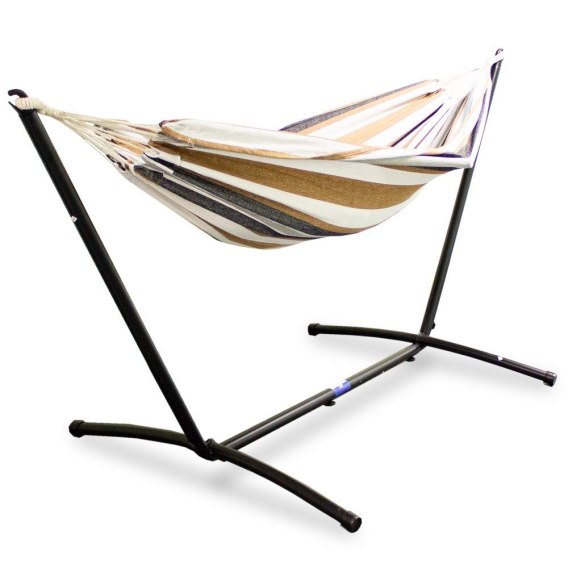 BEŻOWO-BRĄZOWY HAMAK NA STELAŻU