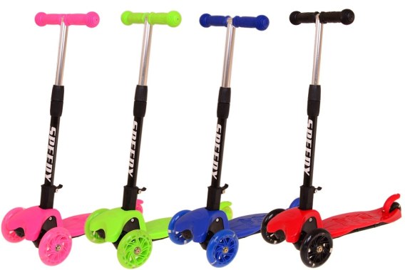 Dzięki zastosowaniu trzech kółek, hulajnoga jest stabilna i bezpieczna . Posiada tylni hamulec, pełniący równocześnie rolę błotnika . Przednie koła wyposażone są w diody LED, które świecą podczas jazdy. Solidne wykonanie i ciekawa kolorystyka sprawią niewątpliwie radość podczas użytkowania zabawki.