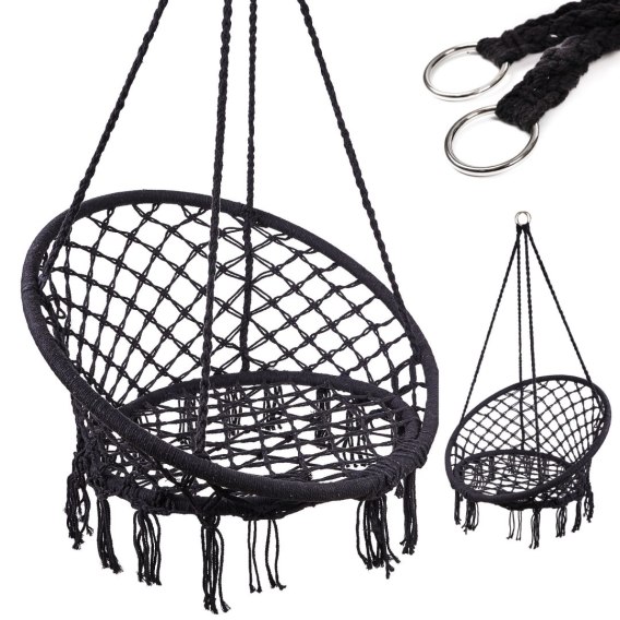 • Huśtawka LUARO fotel bocianie gniazdo czarne 80cm 150kg