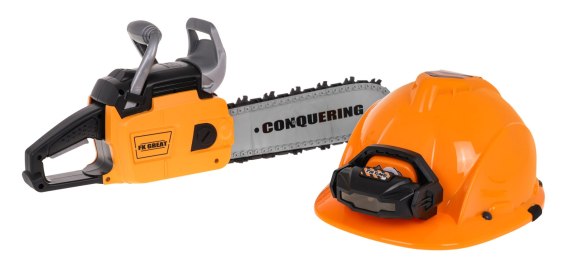 Interaktywna Piła mechaniczna dla dzieci 3+ Zestaw drwala + Obrotowy łańcuch + Kask ochronny z Latarką