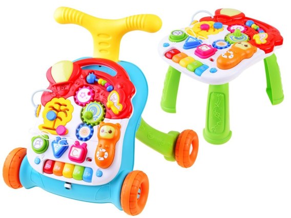 Wielofunkcyjna zabawka pozwoli dziecku na pokonanie pierwszych kroczków, na poznanie różnych kształtów, kolorów, dźwięków.