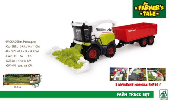 | - kombajn bez przyczepy ok. 20 cm x 11 cm x 19 cm, - kombajn z przyczepą ok. 40 cm x 11 cm x 19 cm, - opakowanie ok. 44 cm x 14 cm x 13 cm. |