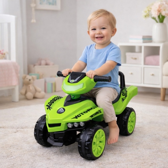 Jeździk QUAD J5 ZIELONY, chodzik, pchaczyk, muzyka, klakson