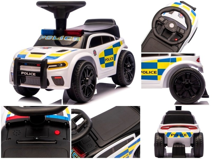 Jeździk dla Dzieci J3 BIAŁY Policyjny Muzyka, światła